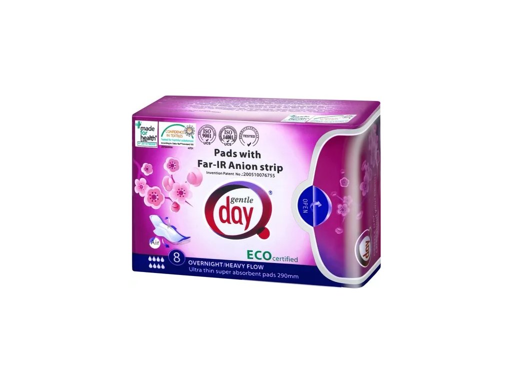 Patentované vložky Gentle Day sú novou generáciou obľúbených aniónových vložiek. Sú obohatené o aniónový pásik, ktorý obsahuje turmalínový kryštál. Ten dokáže vplyvom vášho tela produkovať anióny (záporne nabité ióny kyslíka) a malé množstvo infračerveného svetlo (Far-IR), ktoré je ľudským okom neviditeľné a využíva sa pri svetelnej terapii. Vďaka tomu sa už viac nemusíte báť nepríjemných pachov a množenia baktérií. Vložky Gentle Day majú výnimočné antibakteriálne a protizápalové účinky.