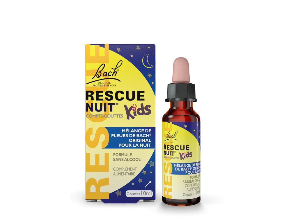 RESCUE® Night Kids - RESCUE® nočné kvapky pre deti obsahujú originálnu zmes Bach® kvetov obohatenú o kvet White Chestnut (Biely gaštan). Sú vhodné pre deti, ktoré majú problémy so zaspávaním. Prináša im pokojný a uvoľnený spánok, bez zbytočného stresu, napätia či tlaku, ktorý spánok u detí často sprevádza.